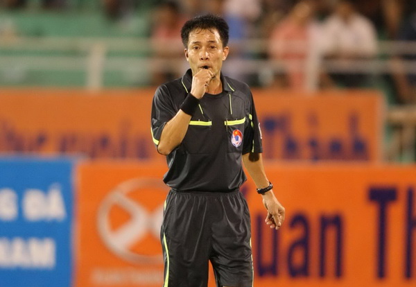 Trọng tài Phùng Quốc Quân đã khiến TĐCS.ĐT không thể tâm phục khẩu phục với cách cầm còi của mình. Ảnh: Quang Nhựt